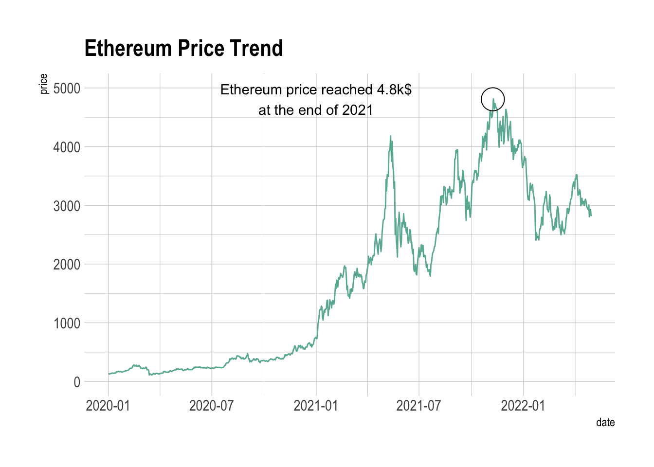 Ether has experienced sharp spikes and tumbles in its price as enthusiasts speculated on a wide variety of applications for the ethereum blockchain like NFT.